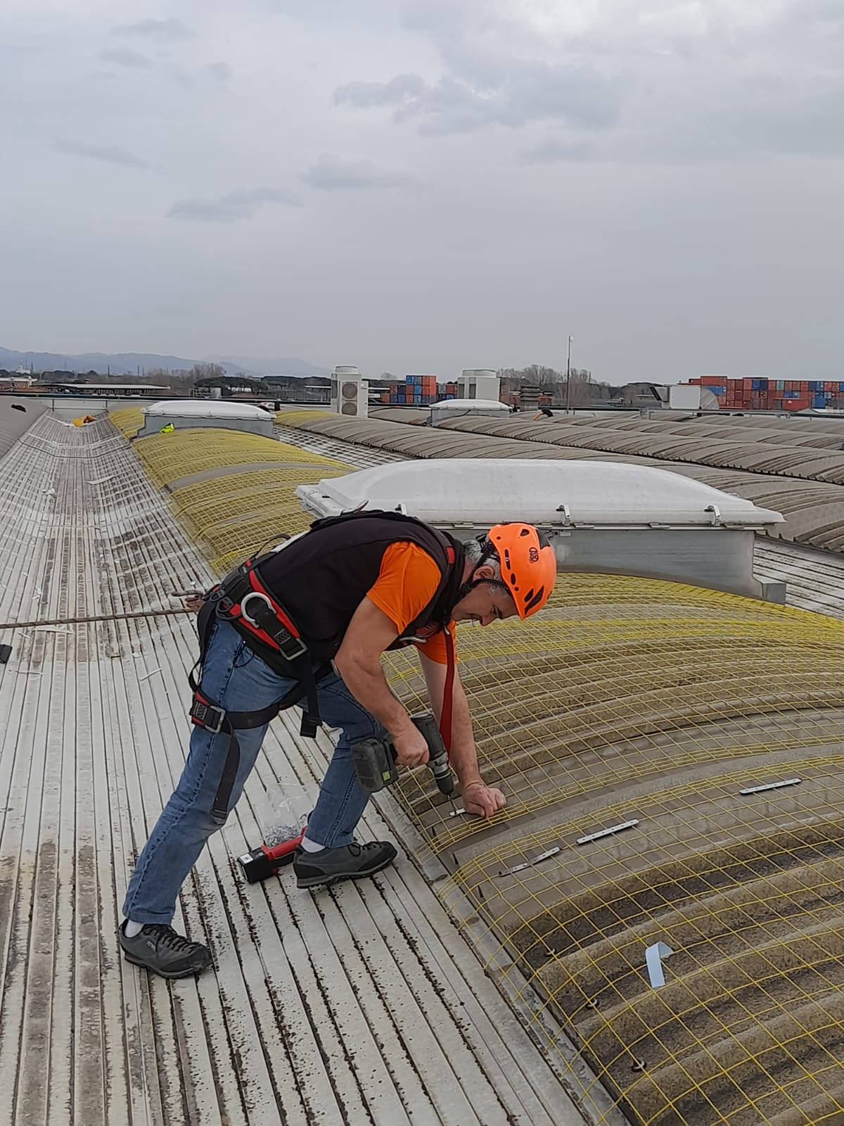 L'intervento ha considerato l'utilizzo di sistemi anticaduta collettivi a chiusura dei punti luce presenti sulla copertura. Tali punti luce erano composti da lucernari in vetroresina centinati di larghezza 1 m e con uno sviluppo di 3 m non pedonabili. Il sistema installato PASINI SAFETY HI-VIS 1200 J in linea con le normative europee è stato installato verificando l'idoneità dei supporti e andando a consentire agli operatori futuri la riduzione del rischio di caduta nei lucernari.