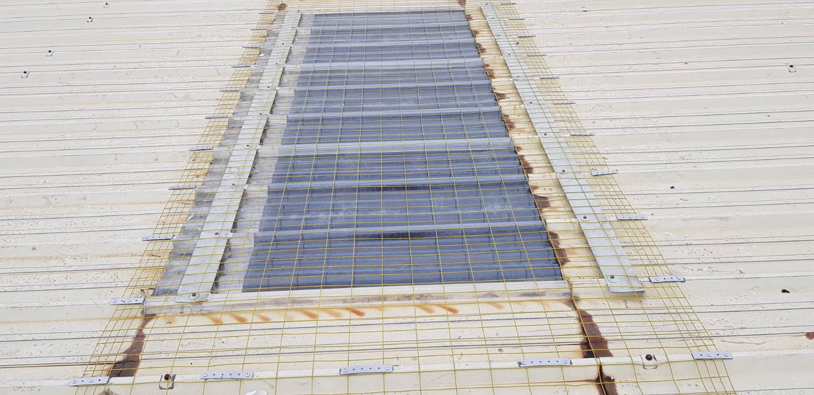 A quel punto, siamo intervenuti per prevenire il rischio di caduta all’interno della copertura, posizionando a protezione dei lucernari sfondabili i sistemi anticaduta certificati con le reti anticaduta per esterni SAFETY SISTEM HI-VIS 600-1200J.